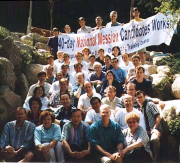 From August 1 to September 9, approximately 39 Seminary graduates representing a broad cross-section of classes attended the 40-Day National Messiah Candidate Workshop in scenic Chung Pyung Lake in the mountains of South Korea. All attendees were challenged by the rigorous schedule comprised of early rising, chanting/clapping sessions, Divine Principle reading, short breaks, midnight and early morning prayer at the various Holy Trees, a diet unlike their typical culinary fare, cold showers, very snug sleeping arrangements and a seven-day fast. The bright side to the physical challenges were the abundant spiritual blessings, liberations and revelations that seemed to be part of just about everyone’s experience. All in all there were about 320 participants from approximately 23 Western nations with separate workshops for Korean and Japanese candidates. The grand finale of the workshop was the assigning of participants to positions as Cain or Abel families in nations throughout the world. Assignments were chosen through a special lottery technique designed by our Founder and participants were encouraged to arrive in their countries within two months.