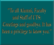 To all Alumni, Faculty and Staff of UTS: greetings and goodbye. It