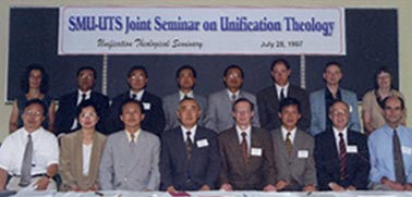 In the same session, Professor Hyun Kwang Kim (UTS '90), proposed a method for establishing the "Completed Testament Theology." He proposed to use Dr. Young Oon Kim's "Unification Theology" as the basis for this project with annual joint seminars providing the forum for ongoing discussions. Professor Kim also proposed to establish clear sections of the existing theology such as Biblical Theology, Systematic Theology, Historical Theology and Practical Theology with professors from each institution being responsible for one section. As in all of the sessions, there was an animated discussion of the proposals but in the absence of President Shimmyo, who was in South America, and President Se Won Yoon, who was unable to attend, few decisions could be made.
