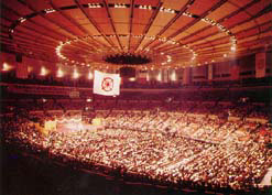 The Day of Hope rally held at Madison Square Garden on September 18, 1974, in New York, the first in a tour of eight major cities was attended by an audience of 25,000. Reverend Moon spoke about the advent of Messiah and purpose of the Second Coming.
