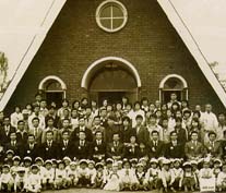 Through the grace of Heaven, we were able to find the frame, but the next problem was finding vertical beams. Members brought some from their homes, from lumberyards, and we were also able to collect trees felled by typhoon Sarah. In this way we accumulated enough wood, and we were able to obtain reeds to thatch the roof. In this way, after countless hardships we were finally able to prepare a house for God, the small holy temple which we had dreamed of. After the church was built, we devoted our efforts to full-scale witnessing.
