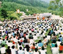 Before the founding of the church, the circumstances in which Reverend Moon would convey the word of God and be rejected and pursued by the opposition were those of an underground church. Reverend Moon, who had been busy speaking God's word in different areas, built the first independent church in Pomnetkol, Pusan. Reverend Moon himself laid the bricks, and although his attempts were thwarted twice, the church that was finally built on the third attempt was the Pomnetkol Church. It was there that Reverend Moon systematically organized the contents of the Principle, full of conviction for the future world. After the HSA-UWC had been founded and the Headquarters Church was moved to Chungpa-dong, forty-day witnessing campaigns were begun. Throughout the country, mud brick buildings were built, and makeshift buildings or parts of houses were used, so that the churches took on diverse forms during this period. Member training was held for twenty-one days starting March 22, 1957. This was a special workshop for young members aimed at immersion in the Principle, led by Mr. Yong-seok Choi at the Kimpo Church in Kyung-gi Province. Two years later, the early workshop system was reflected in the formal education system of the church, ranging from 3-day, 7-day, 21-day to 40-day training courses. The objectives were to become familiar with the Principle, periodically educate family associations and students, and included retreats for leaders and scholars. Members' education came to be held for diverse groups.
