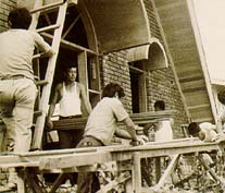 In the 1970s, with support from the Church Headquarters and members, church buildings came to replace the previous barracks and rented homes. According to the church policy at the time, an A-frame building design was adopted for the churches. This design was by church elder Duk-moon Um, and had been approved by Reverend Moon. Gone were the miserable days without churches when members moved from here to there, nervously holding services. Since then, this model has been improved upon, and new forms of churches have continued to spring up. The first A-frame church building was the Shintanjin Church, built in 1974 when Mr. Yeong-seok Song was church leader there. The construction of this A-frame model was an indication that more than twenty years after the founding of the church the organization had externally settled into orbit and begun to have a stable appearance.