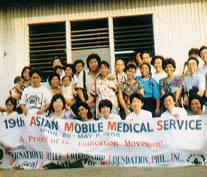 In order to bring far-reaching results in a short period of time, the Unification Church has been establishing mission bases throughout the world. Aside from witnessing, educational and service activities in rural villages, medical services in remote areas have also been regularly conducted. By providing aid in the form of food, medical supplies, clothing, etc. to developing countries in collaboration with the churches of neighboring countries, it has made efforts to practice its ultimate goal, which is to have a "movement of true love." In the 1980s, it implemented a community school movement in which educational opportunities were provided to those with little schooling. It has set up a "local wives' college," and a "senior citizens' college," for instance, to provide opportunities for the better use of leisure time, and create hobby circles. This community school movement is supported by college professors, volunteer college students and salaried workers who offer their services and thereby contribute to the community.