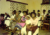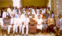 *** Reverend Kwan-hyun Chang, missionary, with members after Sunday service ( June 1989) *** Sunday service at Yaounde Church