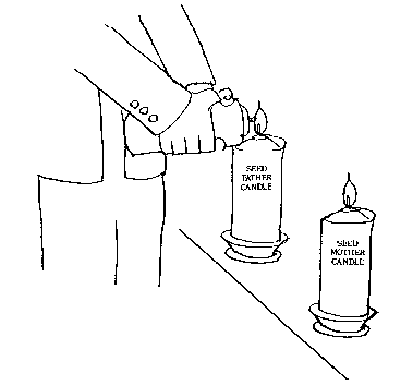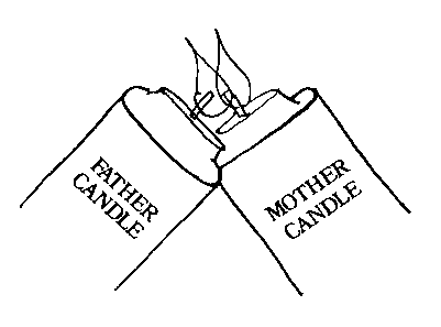 After the couple has inherited the flame to their Father and Mother candles, the flames should be joined for a moment (diagram 17.3) and placed standing side by side to burn for forty minutes.