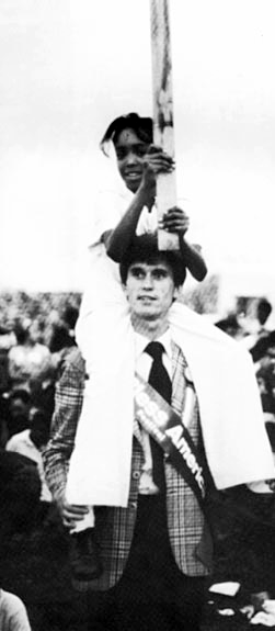 About 10 minutes after I put her on my shoulders True Father was introduced. I was not in the best of shape and my little friend became quite heavy after a while. When True Father began to speak I made a condition to carry the little girl on my shoulders as a representative of the entire black race. I wanted to make this condition to support and uplift the black race before God for the rest of my life. To fulfill this condition I determined to carry my little friend on my shoulders until True Father finished speaking, or until she would ask me to let her down.