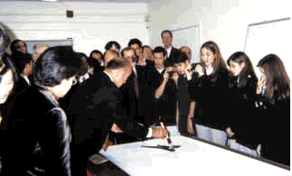 Jin Hun Nim’s first move in August 1994 was to create the World CARP Special Task Force (STF). STF was conceived as a one or two-year program of activist education for new members or high school graduates before they entered college. There was an effort in 1995-96 to integrate STF with the World CARP Academy, headquartered in Boulder, Colorado, but this was financially untenable. Essentially, those who joined STF replicated the intense regime that first-generation members had experienced during the earlier period. They lived in centers, fundraised, witnessed, studied and lectured the Principle, adhered to public schedules, were encouraged to adhere to "public attitudes," joined demonstrations, canvassed for Rev. and Mrs. Moon’s speaking tours, attended workshops and attempted to break through personal barriers. For second generation members who had done none of this before and whose faith was largely conceptual, this was difficult. In an early speech entitled "Challenge Yourself," Jin Hun Nim stated,