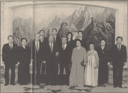 The luncheon drew on, and gradually the atmosphere became more family-like. "You have a most gracious wife, Chairman Moon," said President Kim, gesturing toward Mrs. Moon. "I hear that her hometown is in An Ju City (in North Korea, Pyong An Puk Do). They used to say, "Nam nam puk nyo" [A man from the south, a woman from the north], so that means that all the beautiful women are born up here, right?" Kim Il Sung let out a hearty laugh. Then, looking toward Mrs. Moon, he asked, "Are any of your folks at your hometown?"