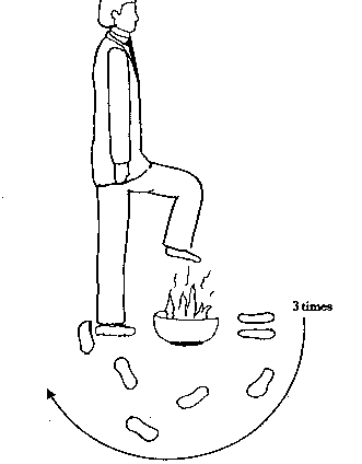 23.4 Step over and walk around the fire three times; do not step back and forth