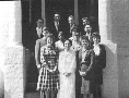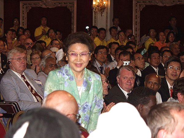 Members in San Francisco celebrate their first God's Day on January 1, 1969. Those who had been members for more than six months wore Holy Robes. Seated in the second row are Sang Ik Choi and his wife; also present are Helen Chin Alexander, Nina Zedicoff Bergman, Alice Hamaker Fleisher, Phyllis Yamamoto Kim, Daikon Onuki, and Beverly Lee Ralph.