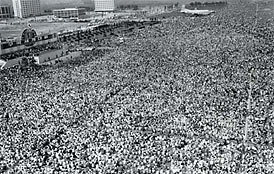 1975: Reverend Moon speaks to 1.2 million people at the Yoido Island Rally in Seoul for the Protection of the Fatherland