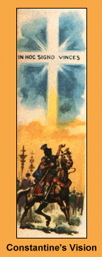 In Hoc Signo Vinces is Latin for "In This Sign (the Cross) You Shall Conquer." It was taken from a vision of the Emperor Constantine in about the year 310. At the Battle of Milvian Bridge, Constantine's army was fiercely outnumbered by the contending emperor Maxentius. On the evening before the battle, Constantine saw a Cross emblazoned on the horizon with the words "In Hoc Signo Crucis Vinces" surrounding it. He immediately set to work placing the cross on the shields of everyone in his army. The next day Constantine swept the enemy into the Tiber River, and entered victoriously into Rome.