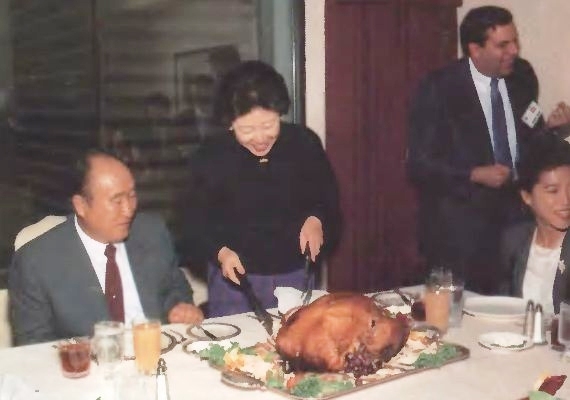Our moments spent with True Parents at ICUS have a real family feeling. All human emotions are expressed and experienced when we are with them. I wish all brothers and sisters could have these experiences with Father and Mother. It was remarkable to have turkey dinner with them in their suite on Thanksgiving Day. Father had the knife and was ready to begin cutting the turkey, when Mother took the knife from his hand and began carving the turkey instead. Then she took a huge drumstick and placed it lovingly on his plate. It was really very cute.