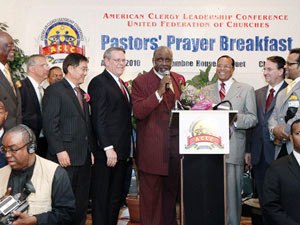 Prior to Minister Farrakhan's message, Bishop Ki Hoon Kim, special advisor to the ACLC-USA who has worked in cooperation with the Nation of Islam for a number of years, said when Min. Farrakhan is the keynote speaker at the prayer breakfast, you can always count on a packed house.
