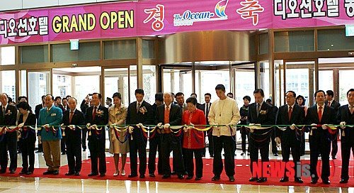 The Ocean Hotel by Tongil Foundation-affiliated Ilsang Oceanic Development Co., held its grand opening on Feb. 28, with True Parents attending. The governor of South Cholla Province, Chairman of the 2012 Yeosu Expo Organizing Committee and Mayor of Yeosu also attended. True Parents were very satisfied with the completed hotel.