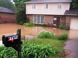 Bellevue area received one of the worst flood disaster. Beech Bend Drive and Harpeth Bend Drive (our church center locates) run along Harpeth River. Sunday morning one third of the backyard was covered with the flood water at 6 am. Gradually the water came up to the church center building. After Sunday Service (10:30 am) the two-third of the back yard was covered with the water. We conveyed electric items and others to upstairs with my family. I parked my car on the higher road. In the afternoon, the water covered the Harpeth Bend Drive and backyard completely.