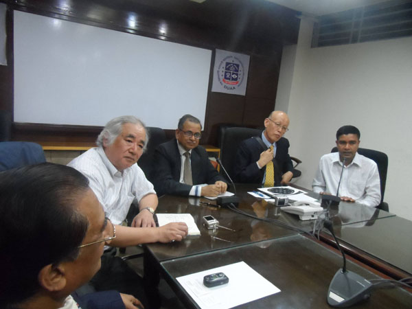 Dhaka, Bangladesh -- A "Dialogue Between Interfaith Activists of Bangladesh and Members of Rissho-kossei-kai Bangladesh" was held at the Conference Room of the Dhaka University Senate Hall on Feb. 25, 2014. Rev. Norio Sakai, a great exponent of interfaith harmony and one of the top leaders of Rissho-kossei-kai, Japan, graced the occasion as the chief guest and Rev. Aritomi Mtsuyuki, head of the Rissho-Kossho-kai Mission in Bangladesh, was present as the special guest. Rissho-kossei-kai is a Buddhist lay movement founded in Japan in 1938 by Nikkyo Niwano and Myoko Naganuma.