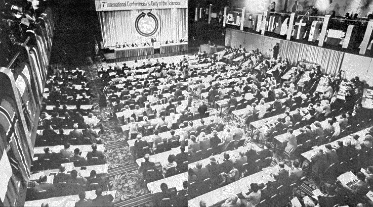 Below: Mrs. R. Salonen, Mr. N. A. Salonen, Lady Eccles, Sir J. C. Eccles, Heung Jin Moon, E. P. Wigner, Un Jin Moon, Mrs. Moon, Ye Jin Moon, Bo Hi Pak.