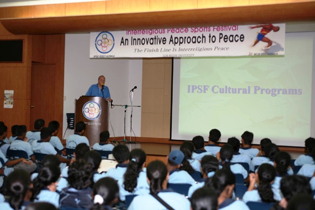 It is a distinct honor and pleasure as the chairman of WCSF to have welcomed you here to Korea. I hope you fought well, not in the name of war but in the name of peace, because those who play together live together in peace. This is what this is all about. The Inter-religious Peace Sports Festival is about building a sandbox, where human beings can strip down to the bare essence and become children again.