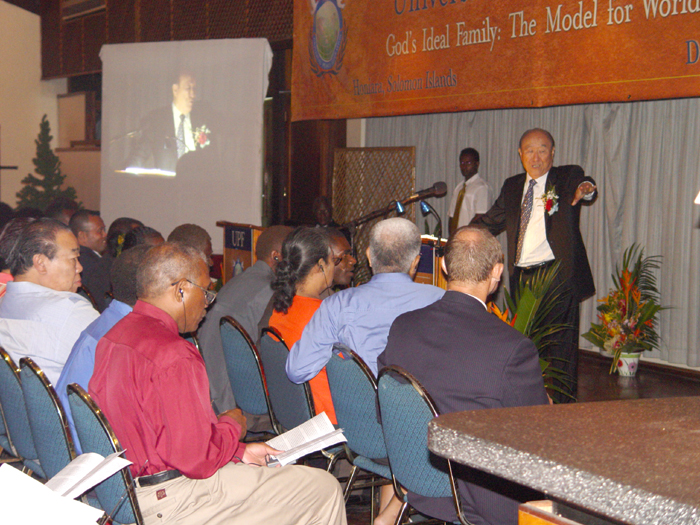 Many religious leaders are proud of their doctrine. But the Kingdom of God has nothing to do with those doctrines. Many Christians think God will bring salvation and all we need to do is believe, but they do not understand the true nature of the Fall and God's situation... I received this message from God. It is not my message. I read this message at least four times each day. You may think I am giving harsh words, but I want you to be fully awake... Since the Fall there has been disunity of mind and body, and conflict on all levels. I heard that even here in Solomon's that there has been conflict between people of two different provinces, over land. 800 people were killed. What is so valuable about land; it is not more valuable than human life... We have to restore the original state of unity of mind and body and theism and materialism.