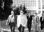 Hyun Jin Moon and his party during the European part of their world tour, August 2, 2000.
