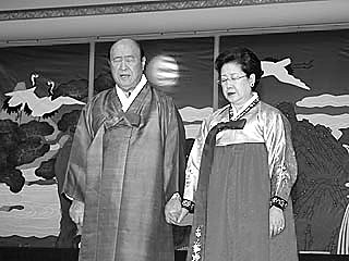 Sun Myung Moon and Hak Ja Han attend the Interreligious and
