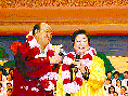 Sun Myung Moon and Hak Ja Han sing at the God's Day celebration,