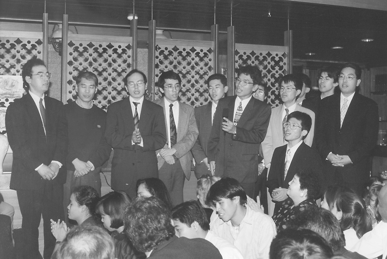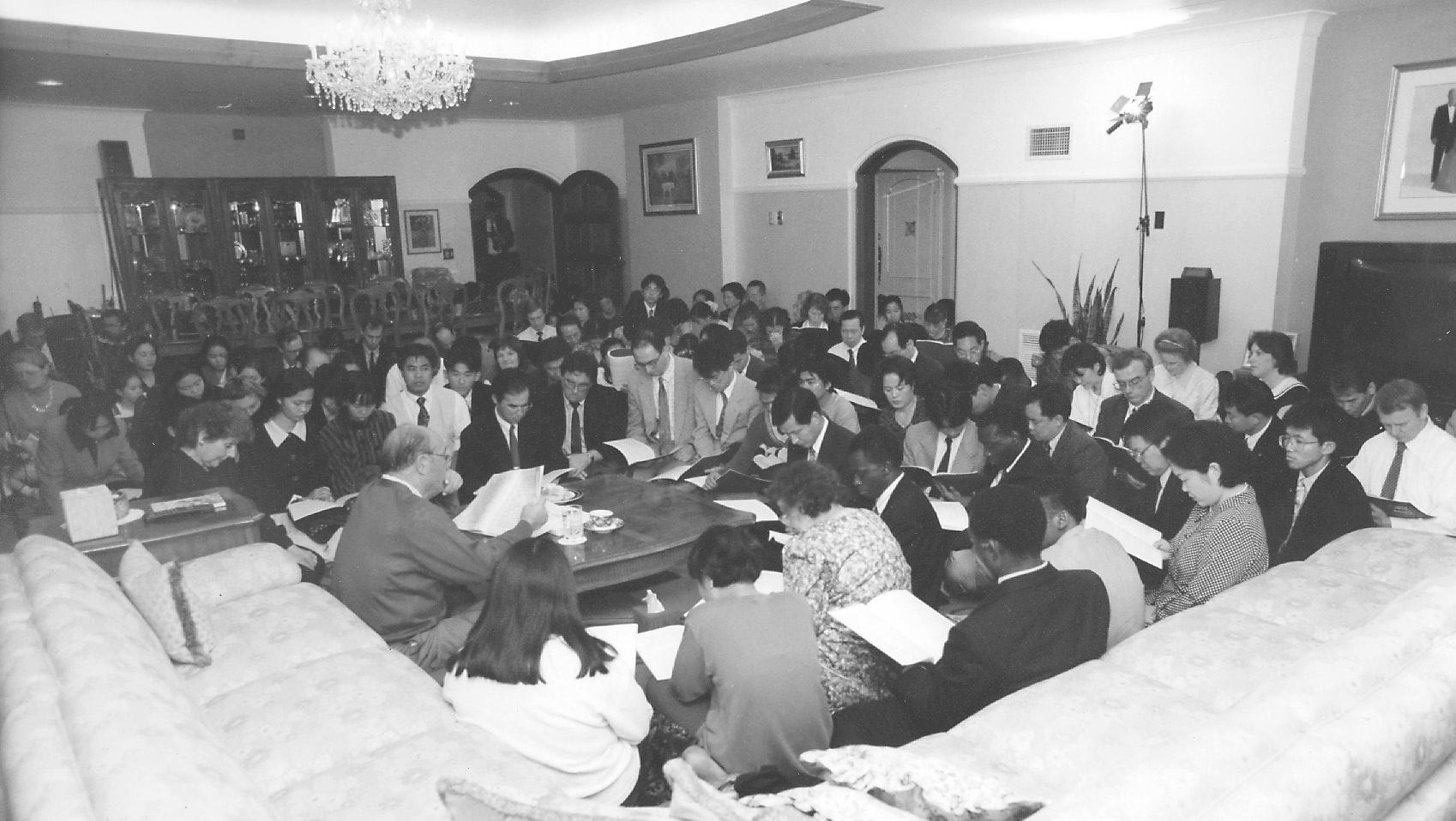 Members sing after Mrs. Moon's speech in Washington DC (4/1/98)
