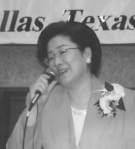 Mrs. Hak Ja Han Moon sings after her speech in Dallas, TX on April 7, 1998.