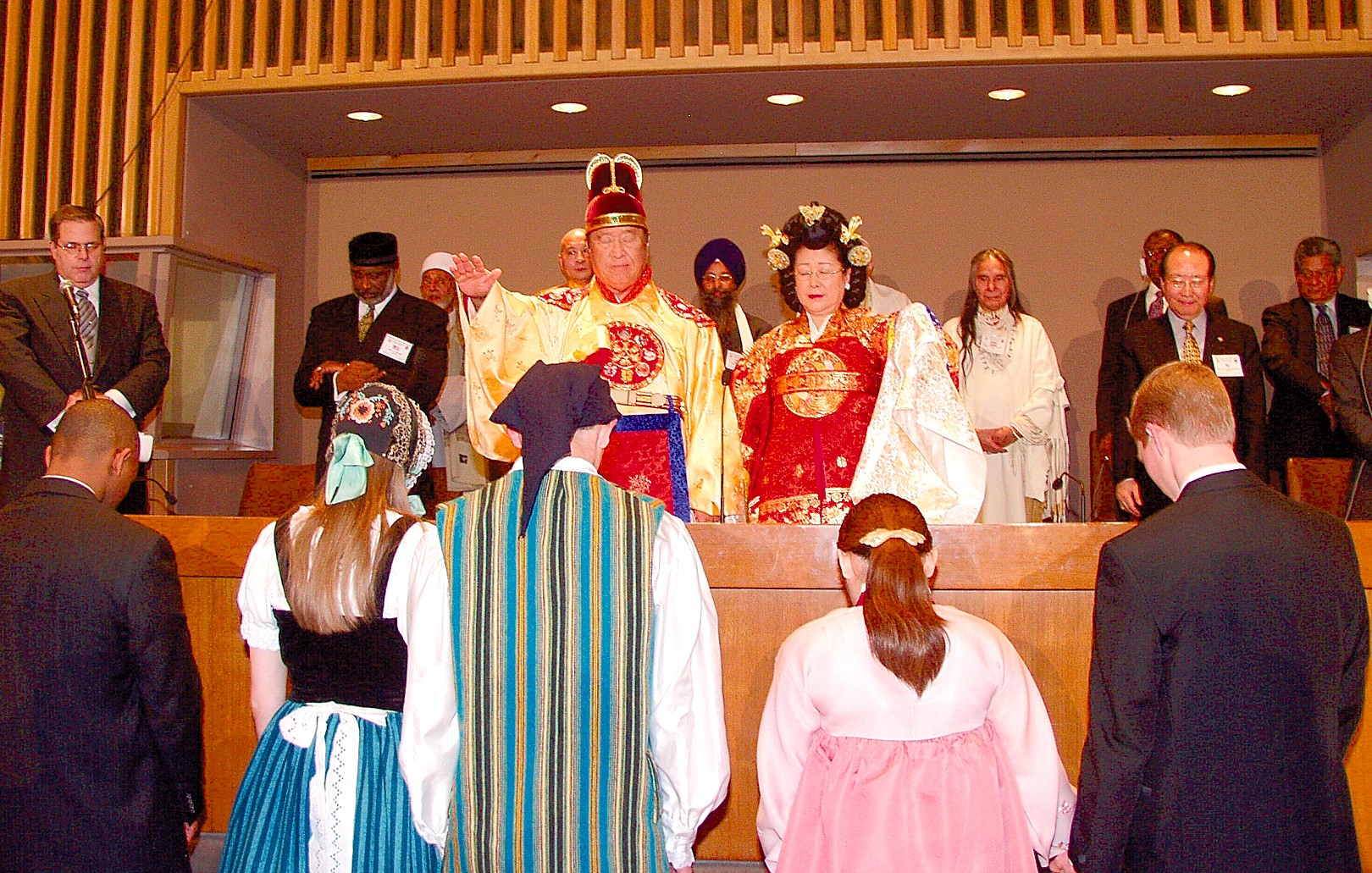 The Moon Family and VIPs at the closing of the Seventh World Culture and Sports Festival, January 29, 2001, New York Hilton, NY, NY. |