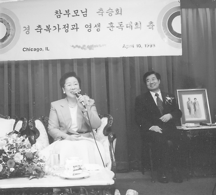 Mrs. Moon at a celebration after her Hoon Dok Hae speech in Atlanta, GA on April 14, 1998.