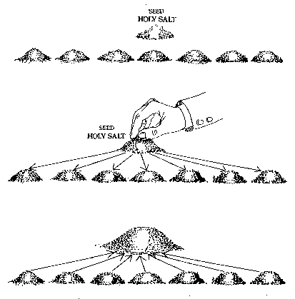 (Note: If just a few grains of this "seed" Holy Salt are available, the seven piles should also each consist of only a few grains each. Multiply only this small amount at first and go through the same procedure a second time in order to make a greater quantity.)