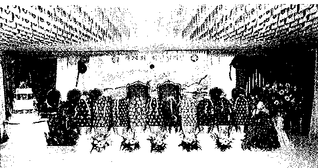 As a group the True Children bow once to the True Parents. The boys then sit on the right side and the girls on the left behind the offering table.