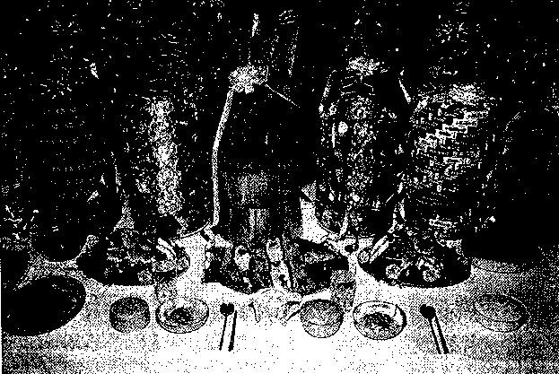 and the stacks simply piled on top of one another. Bows with ribbons hanging down (refer to picture 14.1) should top each stack of food.