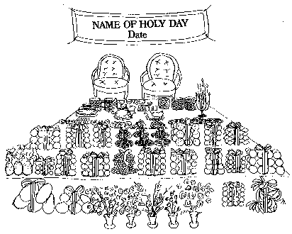 Note. Offering tables used on the family, center, state or national level should not be this elaborate. Refer to diagram 14.3 and Recommendations for Holy Day Celebrations Held on the Center, Department, State, and National Levels for details of making such an offering table.