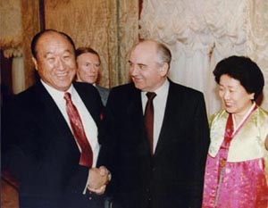 | Reverend and Mrs. Moon meet with Mikhail Gorbachev in the Kremlin on March 31, 1990. |