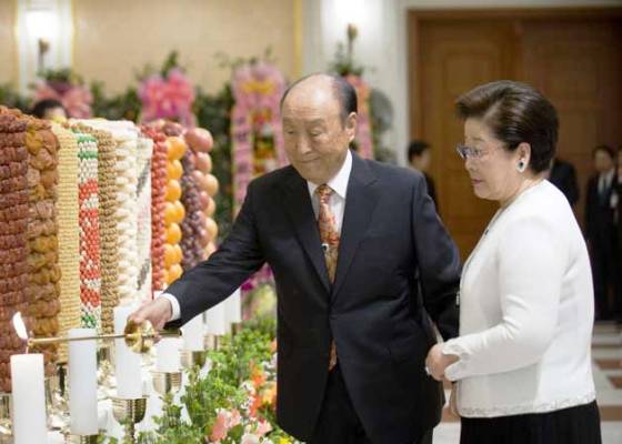 True Parents’ lighting the holy candles ‘47th Day of True All Things and the 3rd Year Anniversary Ceremony for the Opening of Cheon Jeong Gung Museum.’