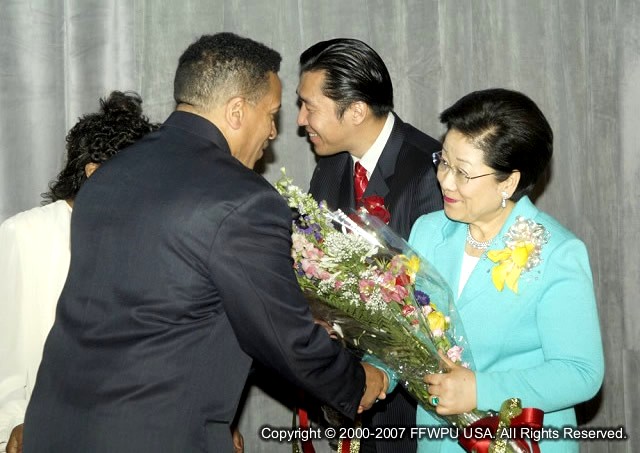 Mother has shed many tears on this tour. When she talks about America - how much she and True Father, love America, how much God prepared this nation for this moment in history. Mother has been also even saying that she feels repentful herself that she couldn't bring America forward more quickly. She wept before us and shared with incredibly kind love and tears that the time is short. She shares frankly and from the heart as our "real" mother who tells it like it is. That we must rise up to a new level. We must realize who we are as Americans. We are not a weak people, we are the people who can embrace all races and lead the world. America must rise up to come to surpass the level that Japan has achieved in support of the providence. American members were chosen and are now being entrusted with the Destiny of America at this time to make One Family Under God. With this heart she commissioned us to be bold and confident. To reach out to our relatives and families and bless them, to our neighbors, to the colleges and to the nation on the highest levels. She commissioned us to pray and seek the new members that God has prepared. Our most important concern at this time is that we must multiply ourselves through HDFC and through the College outreach.