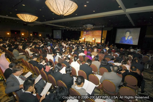 We made up our minds and hearts to show True Mother greater devotion and to realize an even greater response from the Ambassadors for Peace and ACLC clergy. It happened last night. It was great, almost two times the size of the events over the last 6 years. The spirit was absolutely beautiful and the very large ballroom at the Westin Bonaventure LA was filled to capacity.