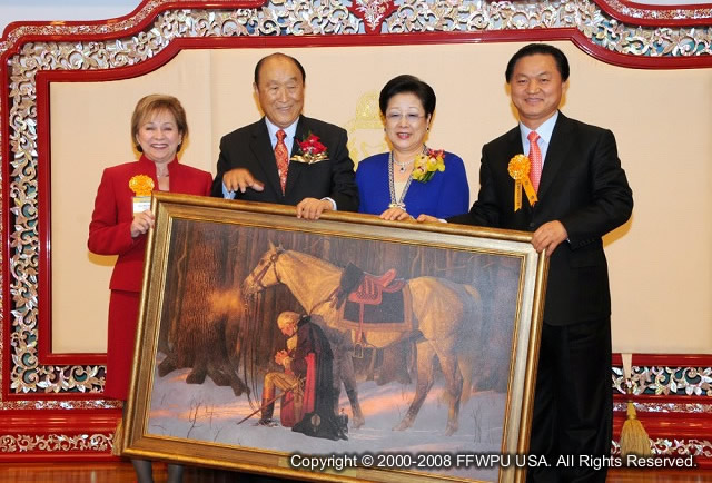 The special production was signed by the artist. (Father has spoken about that prayer many times as the prayer that God heard that allowed America to be born) Amb. Rita DiMartino and Dr. Yang presented these gifts. The first lady of Tanzania as well as many distinguished leaders presented gifts representative of their continents and nations.