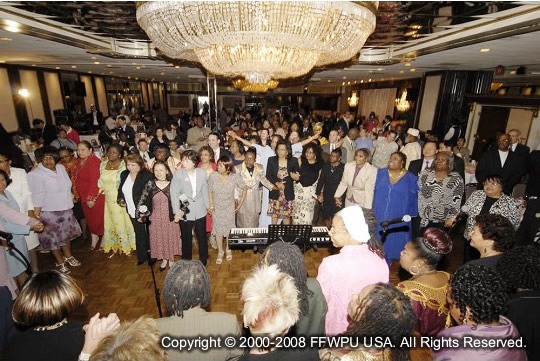 After their initial presentations given by Minister Reiko Jenkins, Rev. Addie Robb and Rev. Sennie Johnson, the Holy Spirit descended over the room. The Women in Ministry began to call upon every woman in the audience to come up to the stage, hold hands and thus create an incredible spirit of unity throughout the banquet hall. One after another, every woman in the room came forward, held hands, and created an incredible and powerful spirit throughout the room.