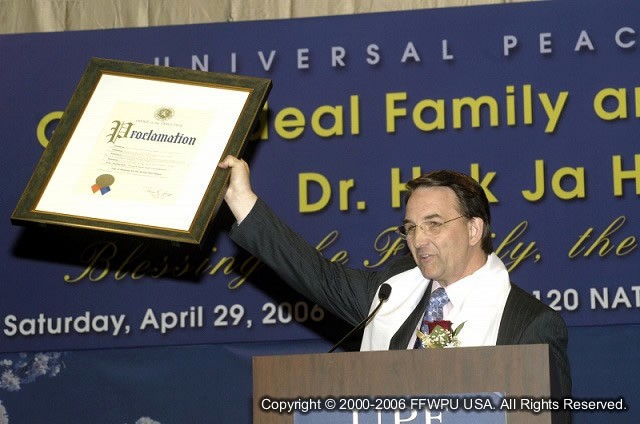 Rev. Kwak, Chairman of UPF worldwide, gave deep understanding and guidance on the heart and holy value of the Blessing. He said, "Please do not doubt that there is a living God and a divine providence at work in history, leading all humanity to a world of lasting peace. Tonight's meeting is directly linked to the guiding hand of God. Through the words we hear, we will learn of the root causes of human suffering and conflict, and of the true path to lasting peace. Our response to this message will affect not only our personal lives, it will even affect the course of history."
