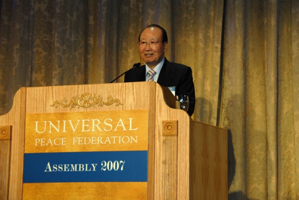 On behalf of the Founders of the Universal Peace Federation, Rev. Dr. Sun Myung Moon and Dr. Hak Ja Han Moon; and on behalf of the Presiding Council members, the Global Peace Council members and the Regional Affairs Council: Welcome to the Universal Peace Federation's Assembly 2007. UPF is providing vision and leadership at a time of global crisis. This is not merely a slogan. It is a reality. Just two years, here in New York at Lincoln Center, we launched UPF.
