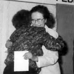A cake with the words "In remembrance of all you have done--January 4, 1959, through February 29, 1988" was brought out in her honor, and she also received a monetary gift donated by brothers and sisters in the United States.