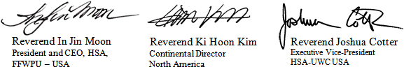 We have entered a new year together with our Heavenly Parent and our True Parents, and the final three years of Cheon Il Guk. By attending this workshop, we can have the opportunity to meet True Parents and to connect deeply to their heart. Now more than ever it is important to be rooted in God's Word. Thus True Father is calling us to make the condition of inheriting the Original Divine Principle through participation in the "Education Session Proclaiming the Completion of the Liberated Realm of the Portion of Responsibility in God's Providential History" and through making a special condition of offering.