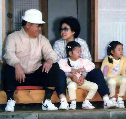 Father and Mother with Shin Jeung Nim, the eldest daughter of Hyo Jin Nim and Nan Sook Nim (on Mother's lap), and Rung Jin Nim, True Parents' youngest child.