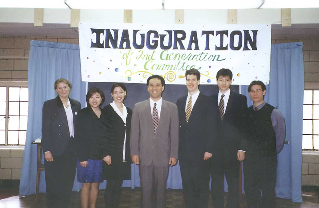 Jin Hun Moon inaugurates Second Generation Committee at Belvedere, Tarrytown, NY on March 14, 1998. Members of the committee are: Tweeran Pumphrey, Misook Kwak, Joni (Ang) Choi, Matthew Jones (Chariman), Jin Man Choi, Jonathan Krist, Dohi Ang.