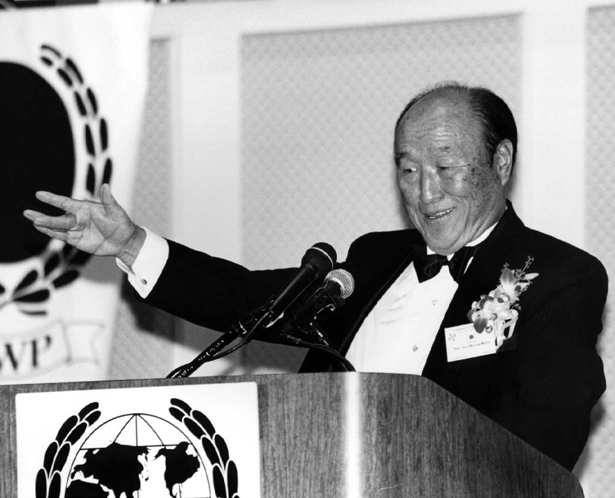 Reverend Sun Myung Moon speaks at the Fourth World Peace Conference on November 27-30, 1997 in Washington DC.